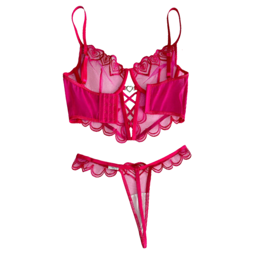 Atenea Conjunto de lencería con abertura entre pierna color Rosa Ajustable