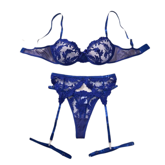 Bianca Conjunto de Lencería Blanca de encaje con olanes