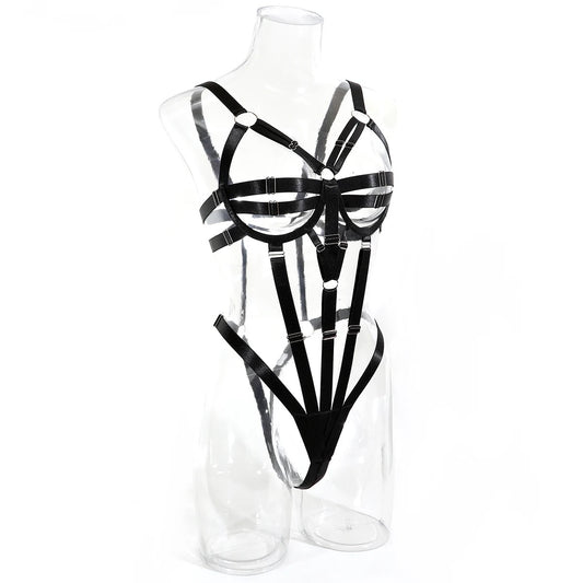 Paulina Body de lencería tipo arnés color Negro Ajustable