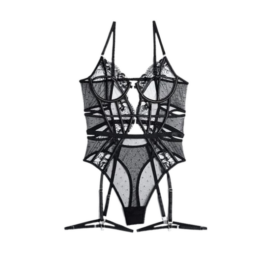 Paulina Body de lencería tipo arnés color Negro Ajustable