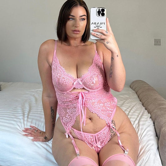 Atenea Conjunto de lencería con abertura entre pierna color Rosa Ajustable