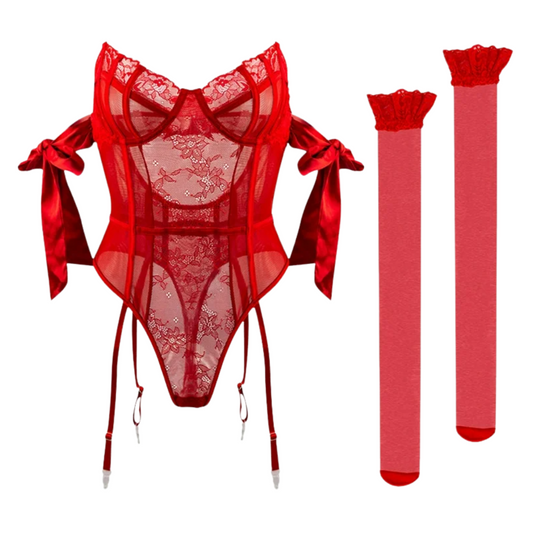 Esmeralda Conjunto de lencería Rojo 5 Piezas