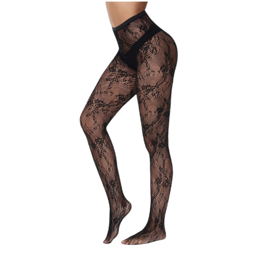 Medias Glam Cerradas- Medias negras de malla con brillos